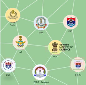 Liaison with Service HQs, MoD, PCDA (Pension), JCDA (AF), Kendriya Sainik Board, DGR, ECHS etc for resolving the problems of members.